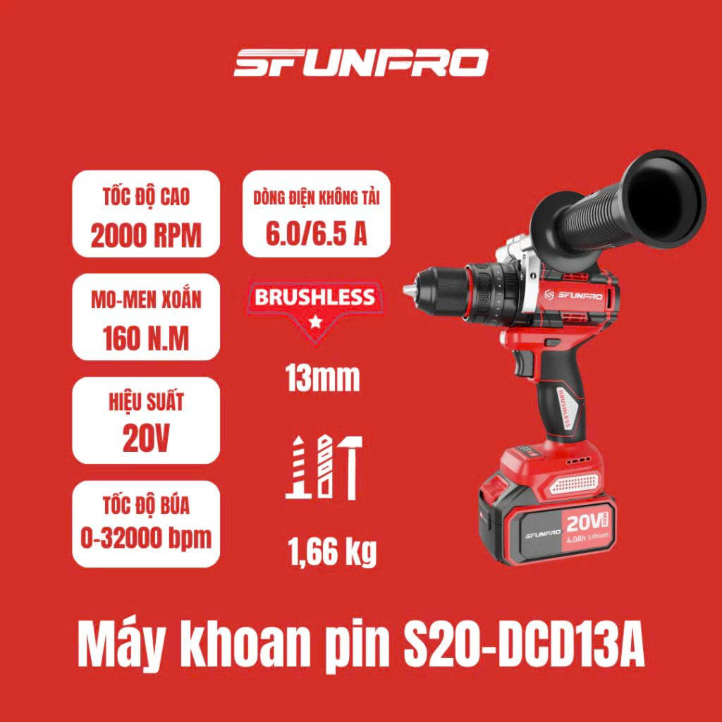 Máy Khoan Pin SFUNPRO S20 DCD13A 4.0Ah 13MM 3 Chức Năng