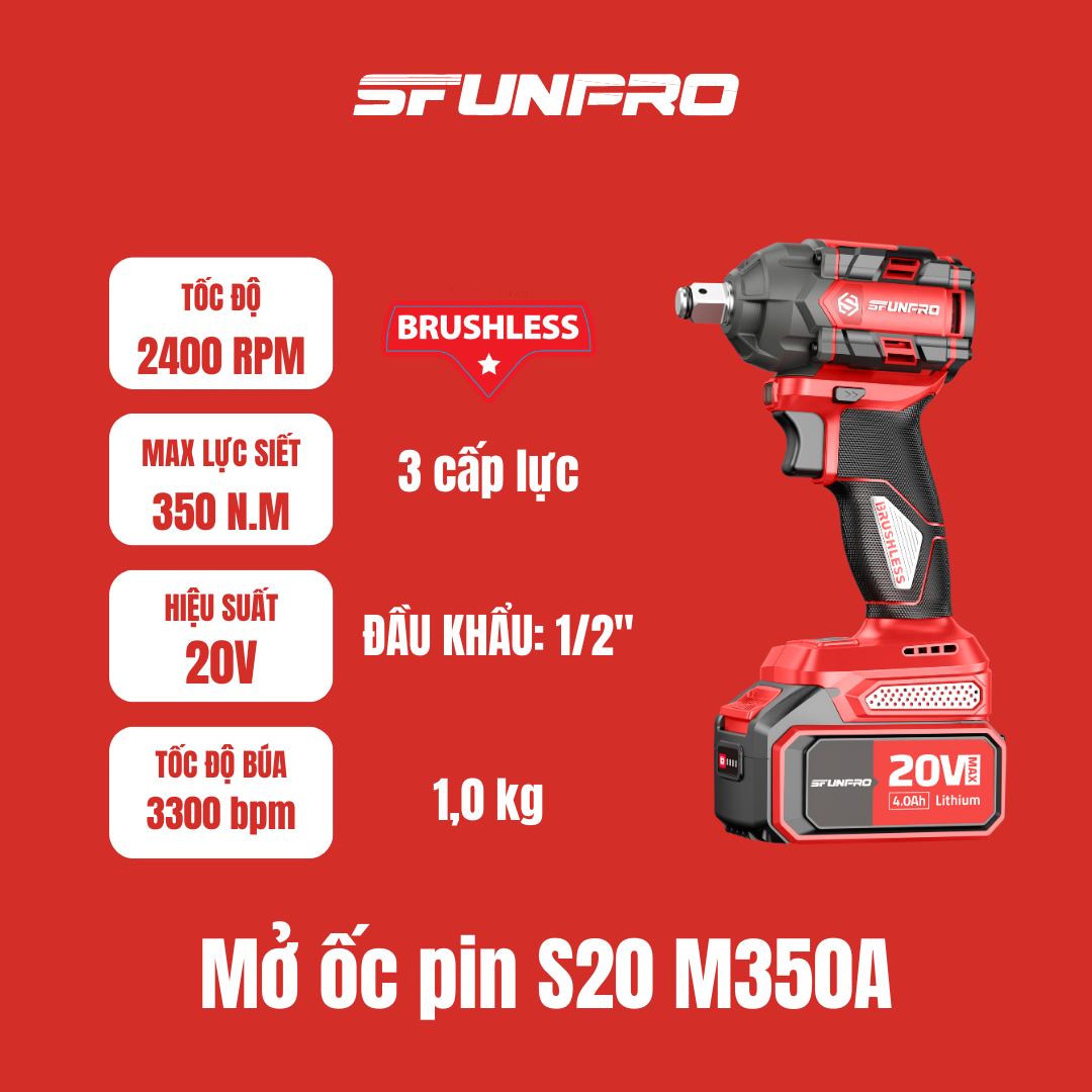 Máy Mở Ốc Pin SFUNPRO S20 M350A Bản 4.0Ah