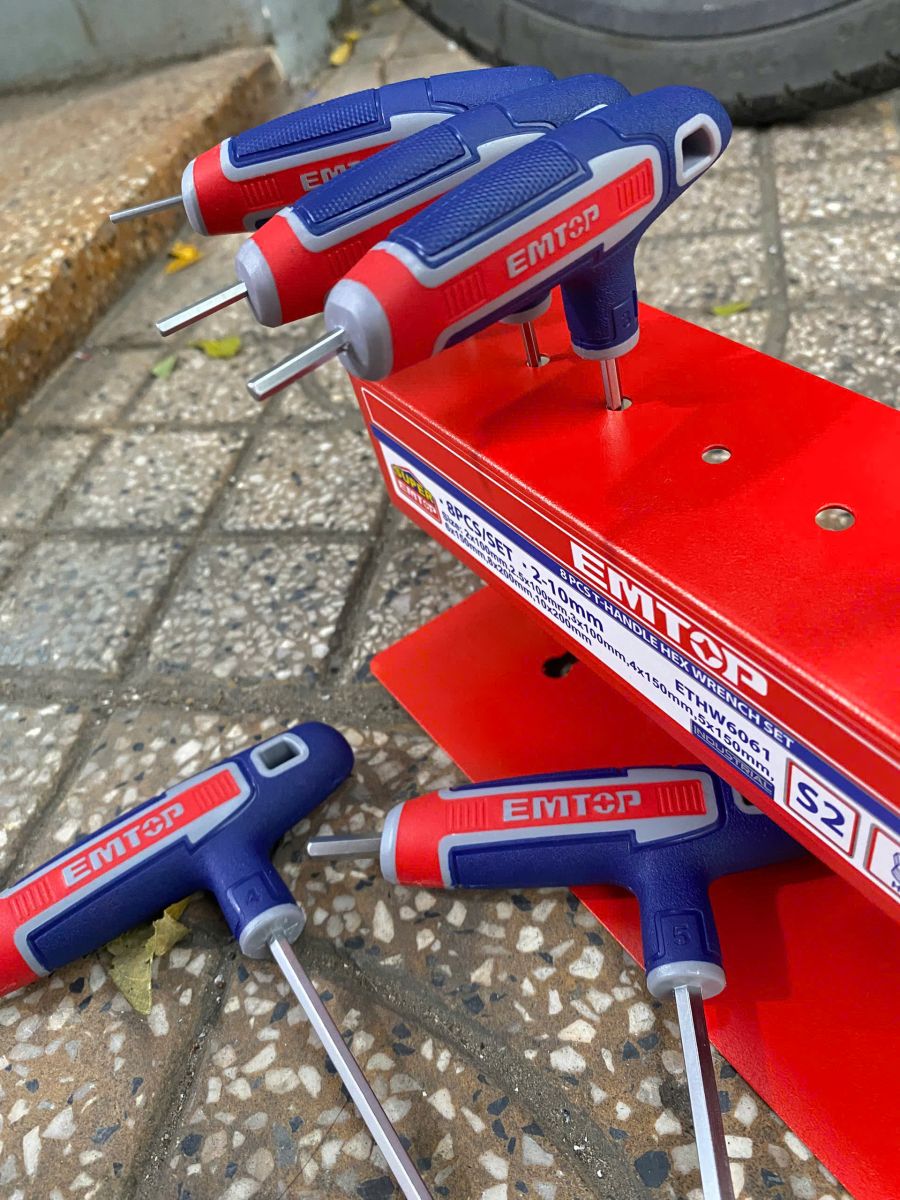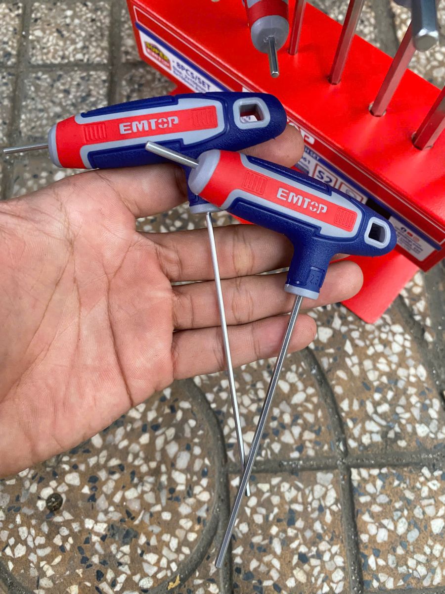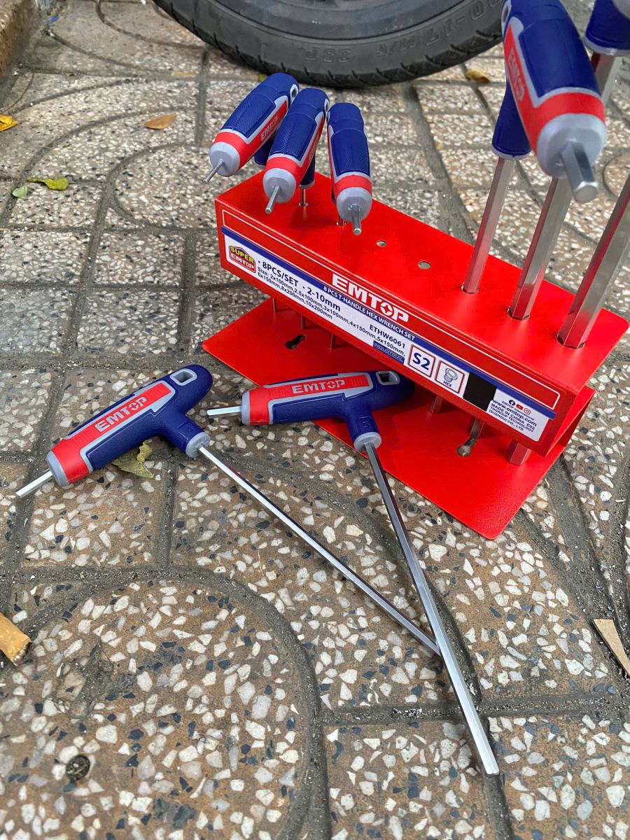 Bộ lục giác tay cầm chữ T 8 chi tiết ( kèm đế sắt ) EMTOP ETHW6061 loại 6 cạnh